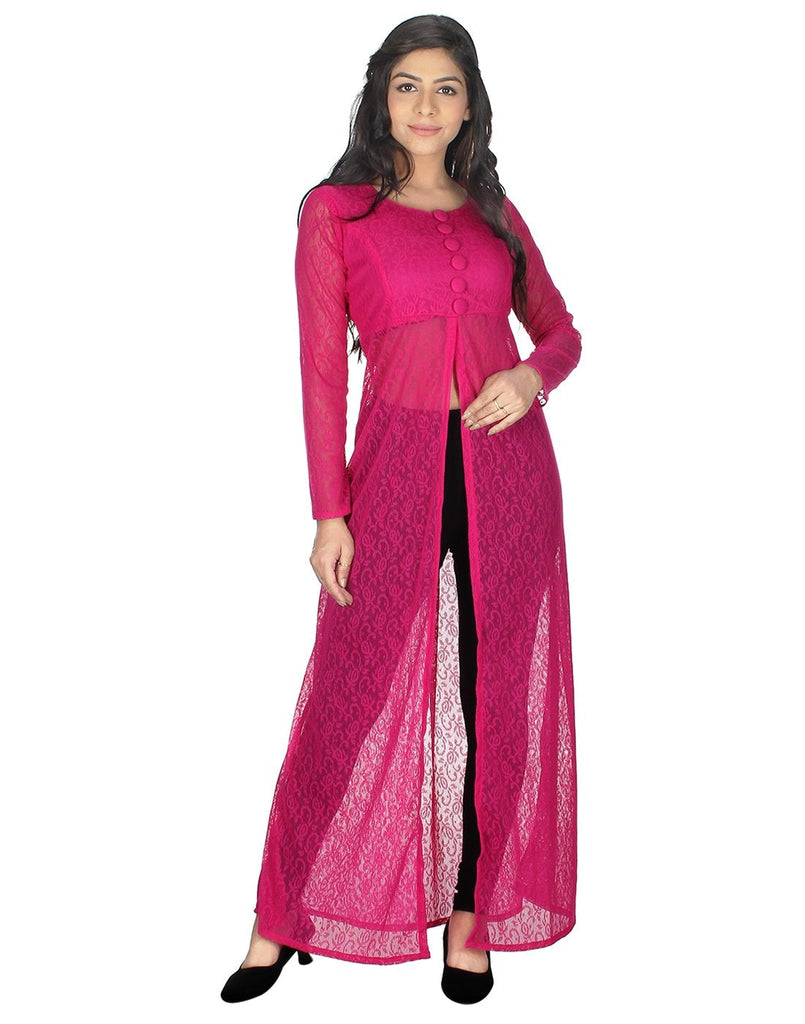 Look fabulous and stylish by wearing this Pink coloured Kurti for Women. Made from Net fabric Kurti has a 3/4th sleeve and Round Neck Manufactured.