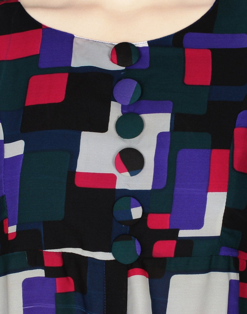 Look fabulous and stylish by wearing this Multi coloured Long Kurti for Women. Made from Georgette Kurti has a fullsleeve and Round Neck Manufactured.