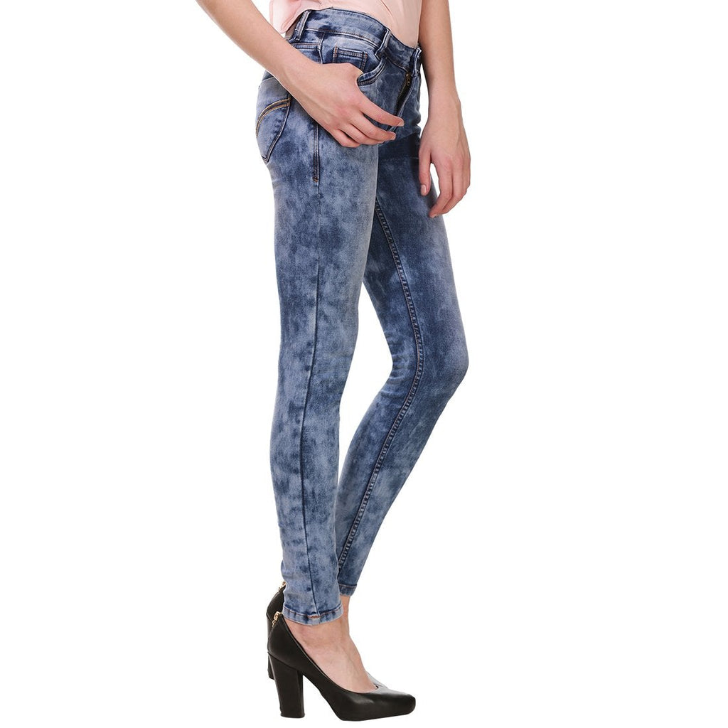 Women's Skinny Fit Heavy Fade Clean Look Blue Streachable Jeans